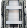 Лодка оснащена всем необходимым: легкие алюминиевые пайолы с антискользящей насечкой и усиленными стрингерами, алюминиевые сиденья из облеченного сплава с нескользящей поверхностью, влагостойкий транец для подвесного лодочного мотора, удобные ручки для переноса лодки, привальный брус с волноотбойником, который защищает баллоны лодки при швартовке.